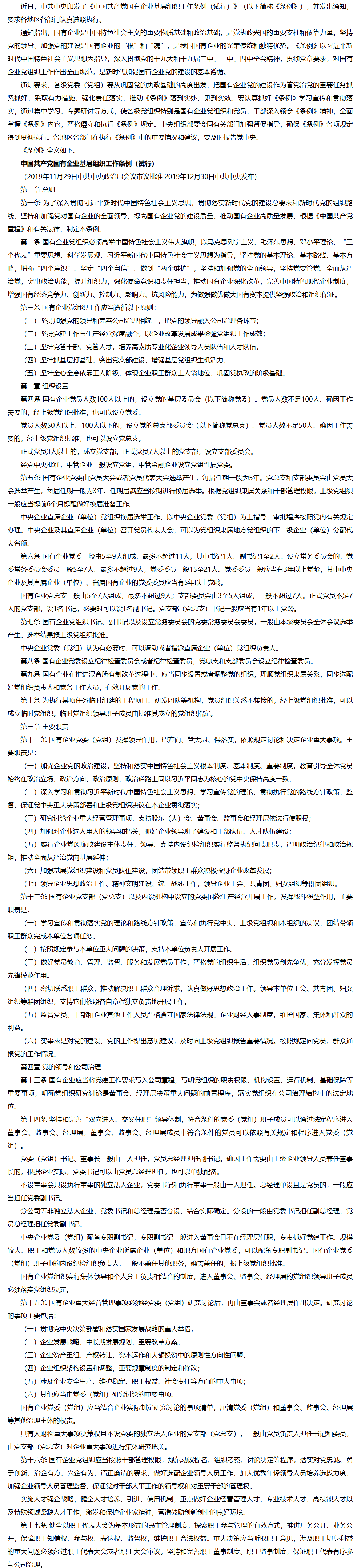 学习《中国共产党国有企业基层组织工作条例(试行)》